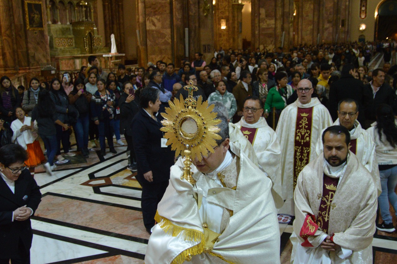 Imitemos hoy a los Apóstoles y, con ellos, acerquémonos a nuestra Madre, a sus pies, como niños, y dejemos que ella nos cuente como fue su experiencia de fe y amor. Que nos diga cómo debemos prepararnos para recibir al Niño Jesús. A ese niñito que, en medio de la indigencia, nos descubre la grandeza del amor de Dios y su identificación con los pobres. A ese pequeño que, entre cantos y bailes, recorre nuestras calles para bendecirnos e invítanos a acoger al hermano pobre y desamparado.